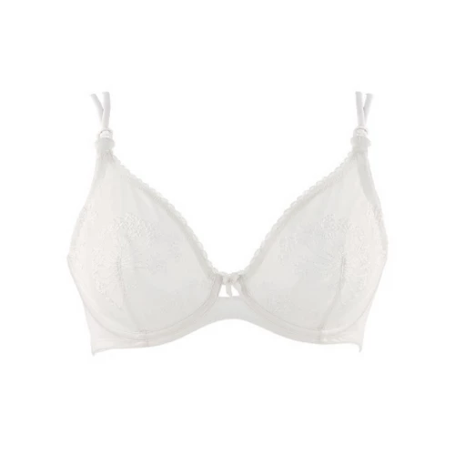 Designing exception, the underwired classic bra Louise is adorned with a delicate made in France embroidery by Potencier workshop from the North of France. Partner of the greatest Haute Couture houses, the workshop cuts each piece one by one to place the precious dandelion embroidery with a millimeter precision.