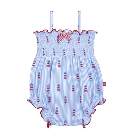 Med Riviera rompersuit with smock. UPF50 fabric.