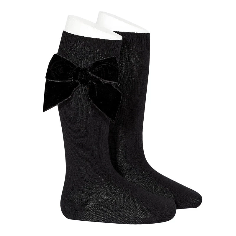 Condor Side Velvet Bow Knee-High Socks – Black Tights & Socks