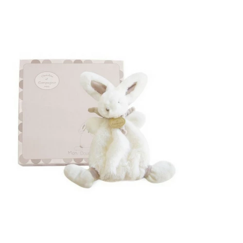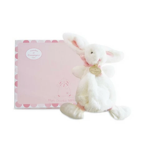 This sweet white rabbit with its blue, pink or taupe bow will quickly be the favorite soft toy of your little one.