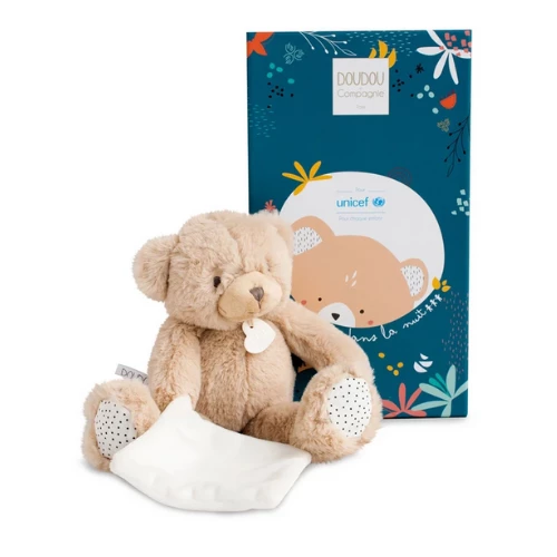 Feels lovely and soft to hold and cuddle. This adorable bear comes in a smart presentation box, making it a great newborn gift idea.