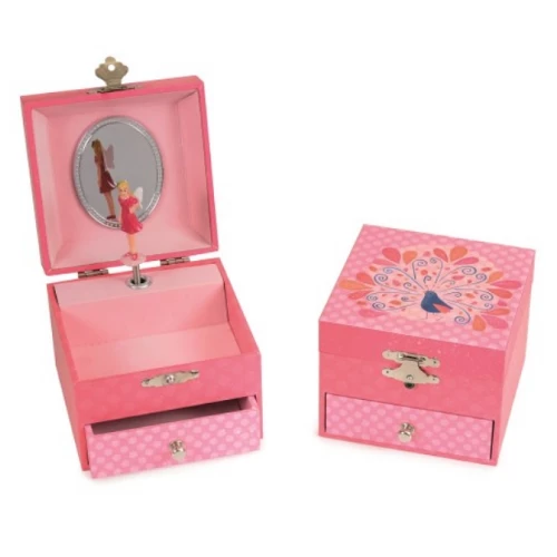 The perfect gift this musical jewellery box Peacock with drawer. Wind up at the back and as soon as you open the box, the music begins to play and the figurine starts to dance. Ideal to store your jewellery or treasures.