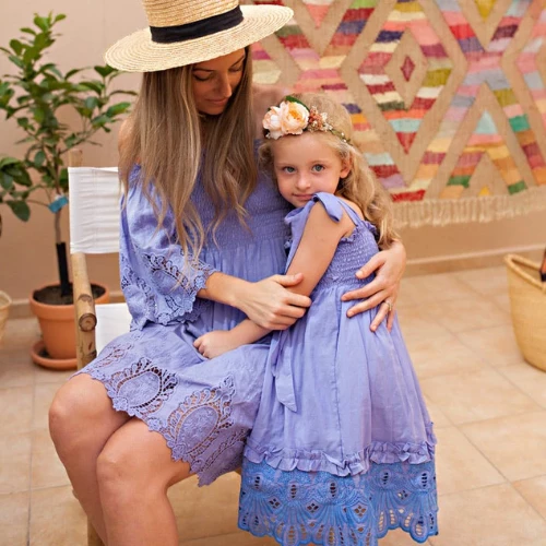 Inspired by the charm of Paris, Parisienne Dress off-shoulder mama dress is edged with romance. This knee-length dress is elasticated at the bust and features our signature French lace, which lines the edges of its bell sleeves and hemline.