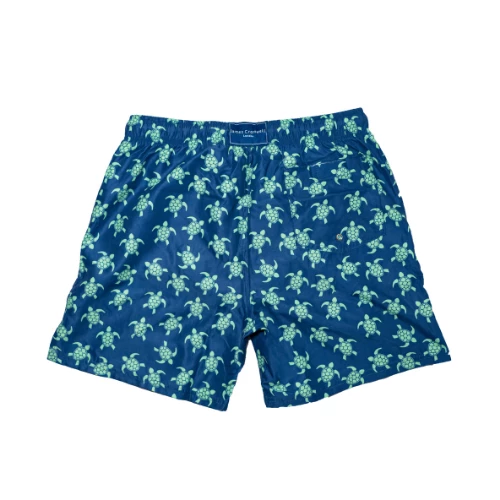 Luxury boy’s swimwear, the Navy Bold Green Turtlee is a summer essential.
