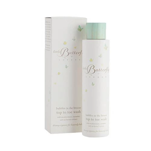 Light and refreshing as bubbles in the breeze, Little Butterfly’s award-winning and organic-certified Top to Toe wash gently cleanses both body and hair, whilst creating a delicately fragrant bath.