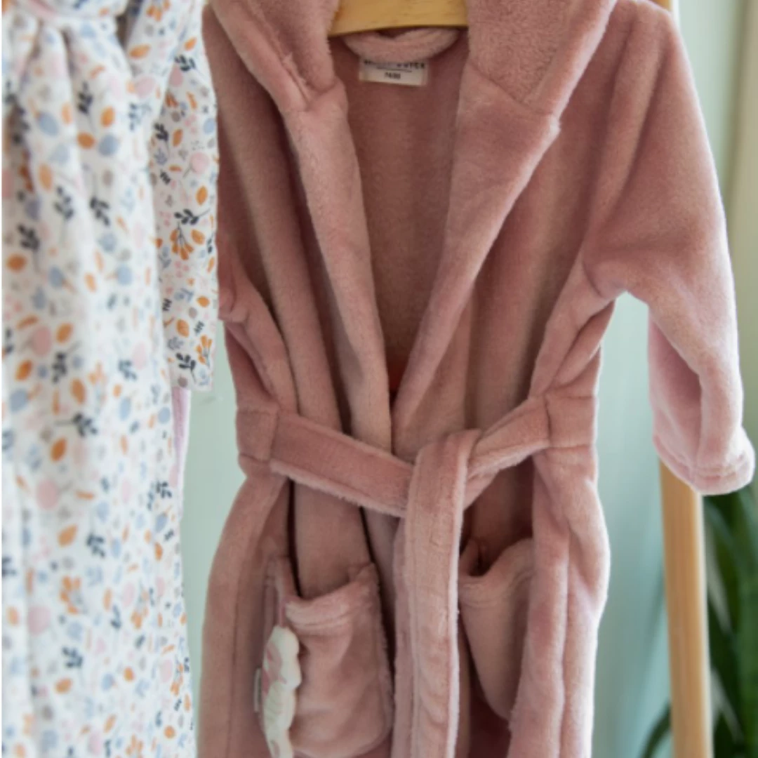 Keep your baby nice and warm after bath time in this beautiful Little Dutch hooded bathrobe. A fun detail is the cute sea creature that’s hidden in the pocket. Available in three different colors.