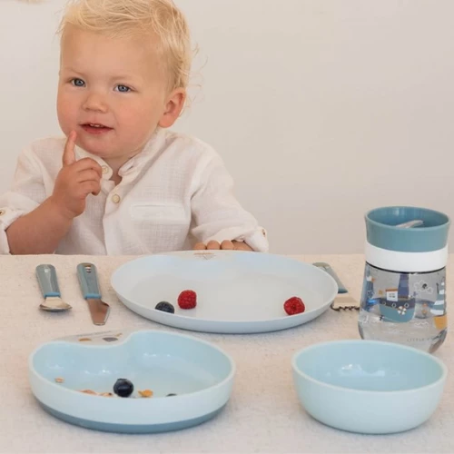 Hungry for a snack or meal? This cute blue Mepal Mio children’s bowl is the perfect tableware for babies and toddlers.The size fits both porridge and yoghurt, as well as fruit, vegetable and other snacks. It is lightweight yet very strong, so don’t worry about those unpredictable moments when your little one explores the food. It will be so rewarding when the bottom of the bowl is reached and the lovely sailboat illustration from the Sailors Bay collection appears. Bottoms up!