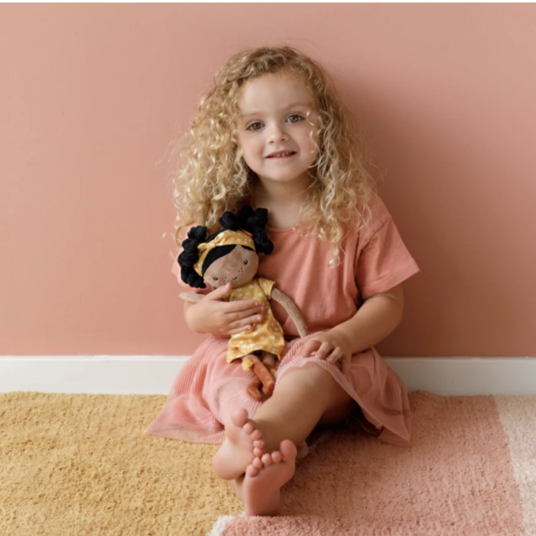 Meet lovely Evi. This plush cuddle doll from Little Dutch in a cute dress wants to be cuddled. Doll Evi is 35 cm tall. Evi can sit up and likes to go with you in the Little Dutch wooden doll stroller. The doll comes in a beautiful storage box.