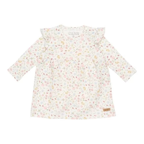 Covered in playful little flowers and butterflies, this vibrant dress boasts a dreamy garden setting. It’s made from certified organic cotton that is free from harmful chemicals. The dress has long sleeves with elegant ruffle details for added charm. It gets your baby ready for any activity ranging from park days to play dates