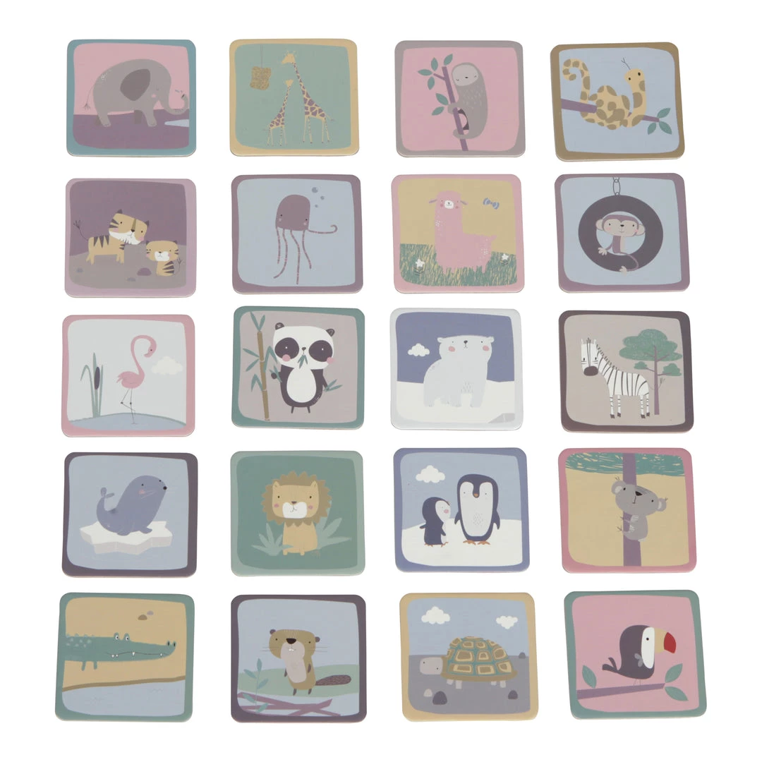 This Little Dutch memo game, featuring our colourful zoo animals, can be played by one or more players. Each card has a fun print of a zoo animal. Your child not only gets to know the animals, but also trains memory and learns important skills such as concentration and game development through play. Game instructions are included.
