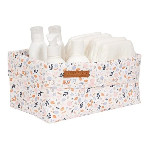 No more nappies, tubes and bottles lying around: with this Little Dutch storage basket the changing table stays tidy and organised! The Little Dutch storage basket is beautifully finished and offers a place to store all the products you need daily to take care of your baby. With the cool leather label and the beautiful print, it is a remarkable accessory in every nursery.