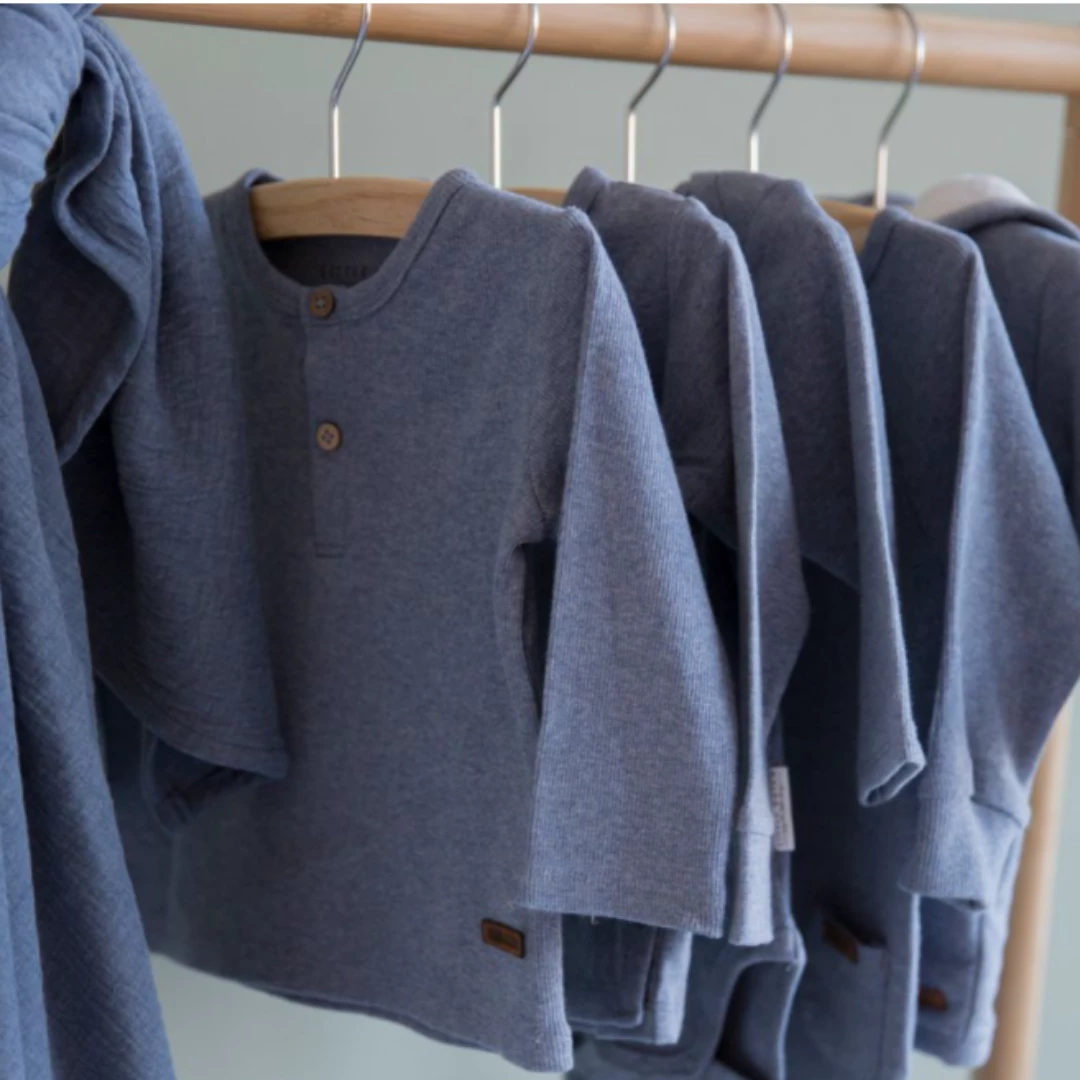 In combination with Little Dutch trousers, this T-Shirt is a beautiful set for your baby. The shirts are made of wonderfully soft material and have two buttons on the front. Available in a variety of colors and prints. Complete the outfit with booties, a cap and a jacket.