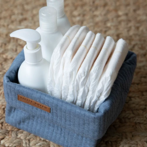No more nappies, tubes and bottles lying around: with this Little Dutch storage basket the changing table stays tidy and organised! The Little Dutch storage basket is beautifully finished and offers a place to store all the products you need daily to take care of your baby. With the cool leather label and the beautiful print, it is a remarkable accessory in every nursery. Also available in a smaller size.