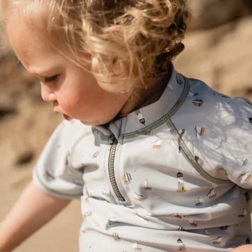 Let’s go to the beach! All you need is this cute pair of swim shorts in recycled polyester and you are good to go. The comfortable and stretchy fit allows them to play around in the sand and have fun with the water, in style. Available in sizes 62/68, 74/80, 86/92 and 98/104. Together with a towel and a inflatable beach item, you have all the beach essentials you need.