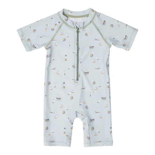 Let’s hit the beach! With this one-piece swimsuit of recycled polyester you are ready for some water fun and a long day in the sun. Whether you love jumping at the waves or enjoy building sand castles, you will definitely look as cool as a real surfer. This one-piece swimsuit with short sleeves will keep your little one warm in the water and protected from the sun. Thanks to the zipper on the front it’s easy to put on and take off. Even when your little one is wet and covered in sand. The swimsuit It is made from UV protective fabric and is available in sizes 62/68, 74/80, 86/92 and 98/104. Make sure to bring a beach poncho and a inflatable beach toy and you are ready to go. Don’t forget to always use sunscreen lotions to protect your little one.