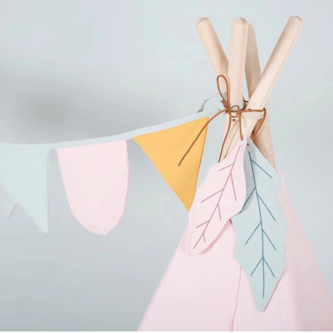 The Little Dutch wigwam is the ideal hiding place for little adventurers or a place to relax with a book. The wigwam is supplied with tent poles, a comfy play mat, cheerful feathers and a coloured flag line to finish it off. The wigwam guarantees hours of fun! Also available in mint.