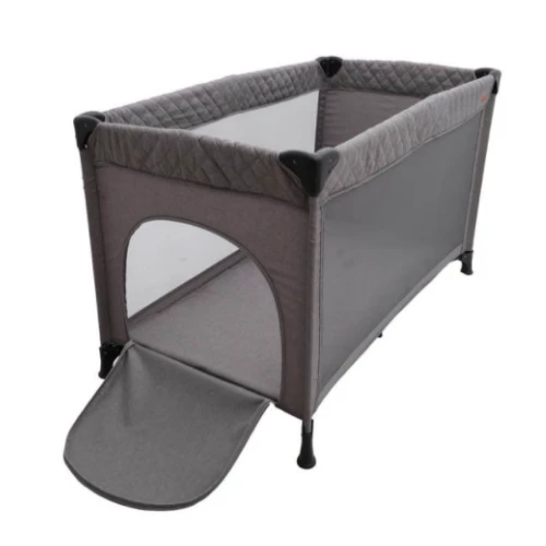 Easy on the way. If you are going for a long or short trip, bring one of our travel beds to make sure your child can have a sleep during your stay. The travel cot is easy and compact to fold. It comes in a bag that can be brought along when you are on the way. Thanks to the mesh fabric on the long sides, your child can look around and air circulation is ensured. The hatch on the end of the bed allows your little one to crawl into the bed independently to avoid backache. The black frame and black mesh fabric give it an extra touch of style.