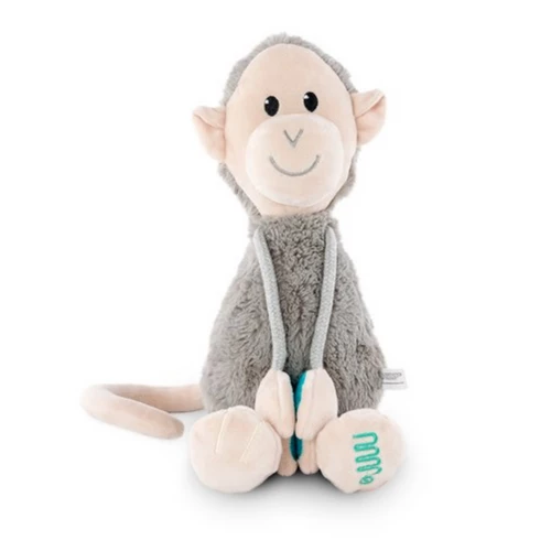 I have been designed in the UK and hope to be your soft, cuddly monkey friend. Hang me up, carry me round!