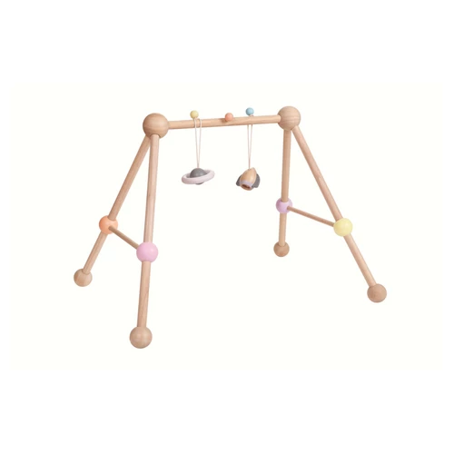 Plan Toys Baby Activity Gym is a beautiful solid wood baby gym with a sturdy design and three hanging toys to keep baby entertained.