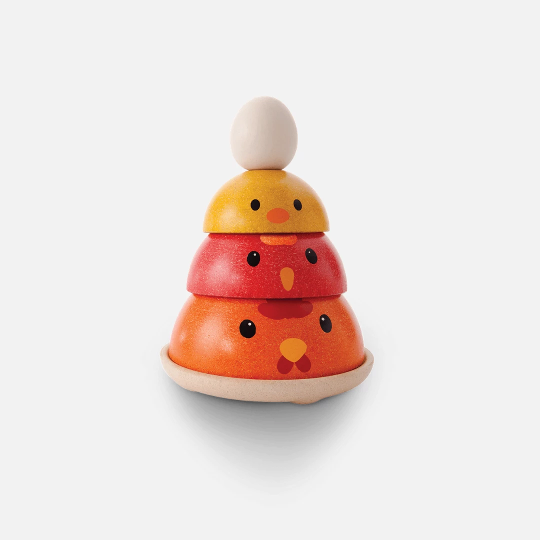 This basic nesting toy comes with a chicken theme. It consists of 4 pieces and a circle base. Children are able to learn about the sequencing, life cycle of a chicken and play in various styles.