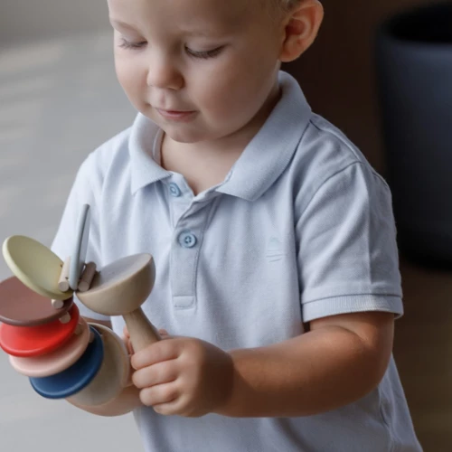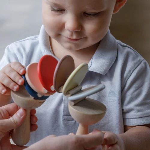 Using an alternating up and down motion with both hands, the toy’s colorful segments will create various click-clack sounds.