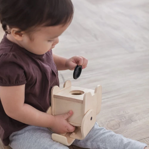 The beautifully-designed Elephant Bank attractively serves as a piece of decor in any room! The adorable bank helps motivate children to save money and learn math skills while also enhancing their fine motor skills. Put a coin into the slot and raise the elephant’s head up to let the coin drop.