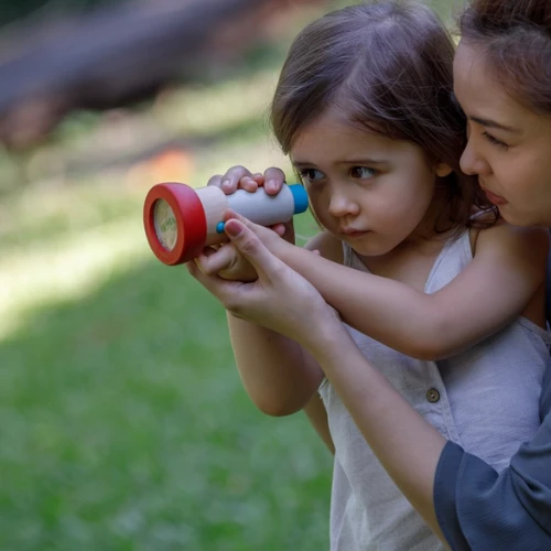 View the world through an artistic lens with the wooden Kaleidoscope! Little ones can put their favorite objects inside and experience a swirling explosion of brilliant colors. They can also explore objects around them and see what they discover through the lens. As educational as it is entertaining, this kaleidoscope fosters creativity, imaginative thinking and curiosity.