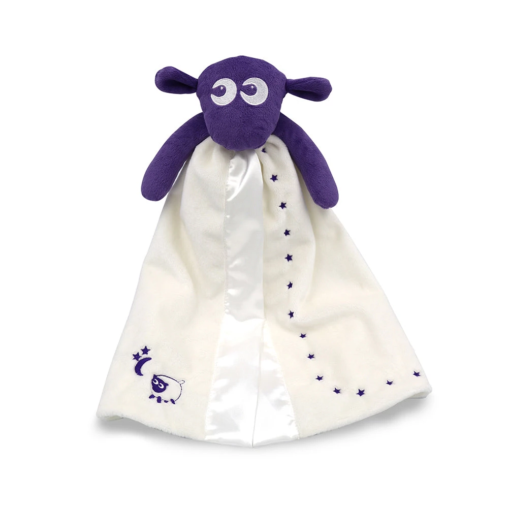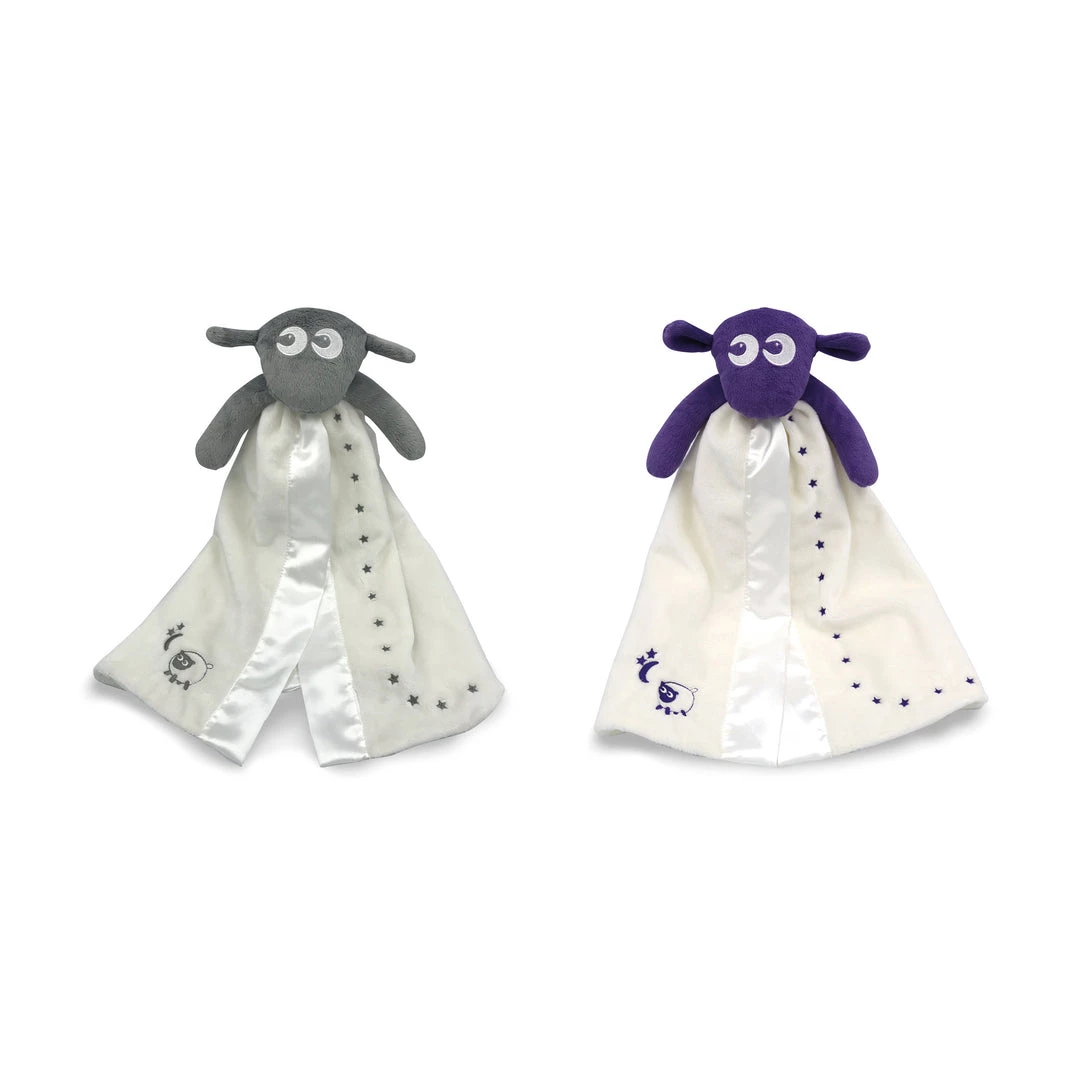 Ewan the dream sheep has a new member in his flock… introducing the baa baa blankie! This super soft comfort blanket is made from snuggly plush with silky edging, perfect for bedtime cuddles and snuggles. Featuring ewan’s friendly face in classic purple or grey, combined with a gorgeously soft blanket, the baa baa blankie provides comfort and helps little ones drift off to dreamland at home or on the go, without the need to count sheep!